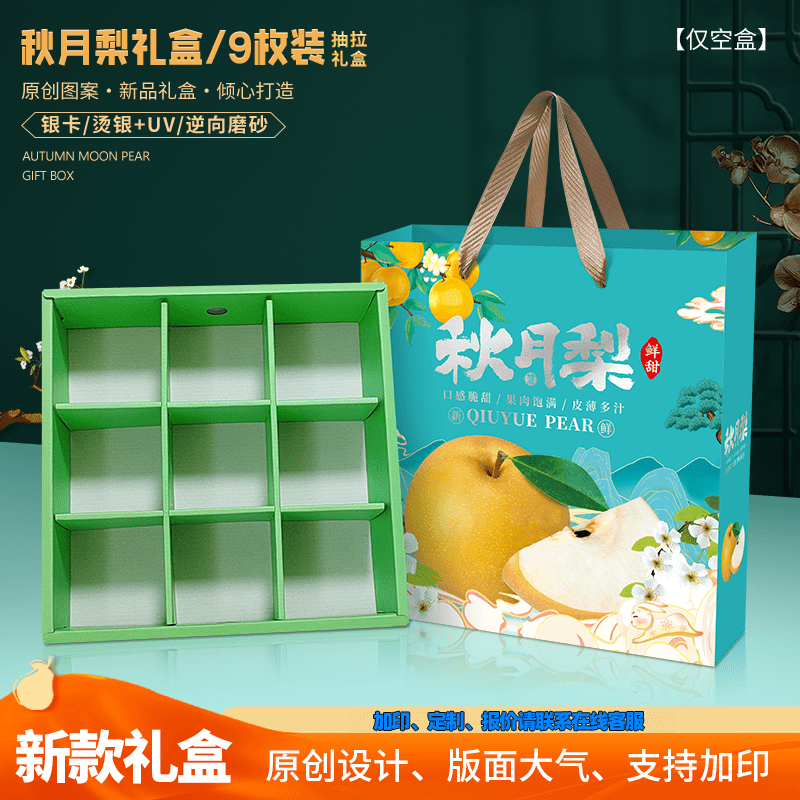 星空蓝秋月梨9枚天地盖银卡款+绿色内托隔板+手提袋