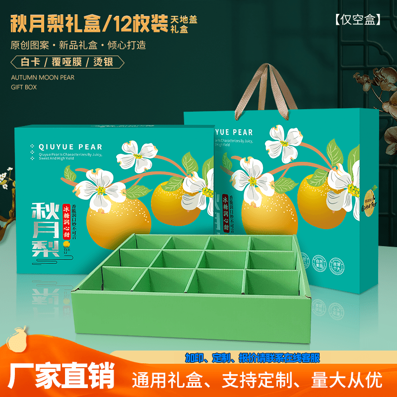 湖蓝色秋月梨12枚天地盖白卡款+绿色内托隔板+手提袋